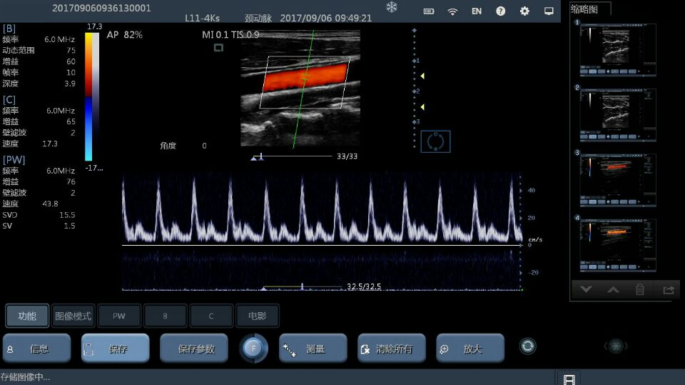 Color/Power/PW mode | D velocity, D trace, PS/ED |